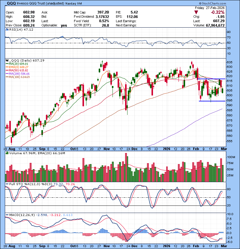 QQQ range lives on. Big Iran war news over the weekend. Let's see how market reacts.